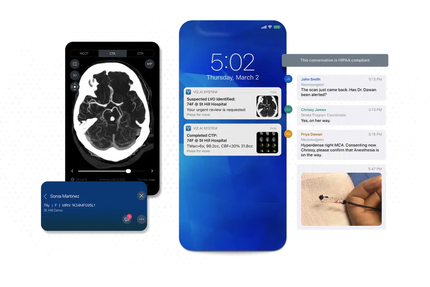 Viz.ai, an AI-enabled stroke detection and coordination tool, is now in use across 2,000 hospitals in the United States. The system analyses CT scans within seconds, and when a suspected large vessel occlusion is identified, sends an alert to the treating specialist’s smartphone. This removes the manual chain of phone calls, image sharing, and delayed handovers that traditionally adds critical minutes between a scan being taken and a decision being made.